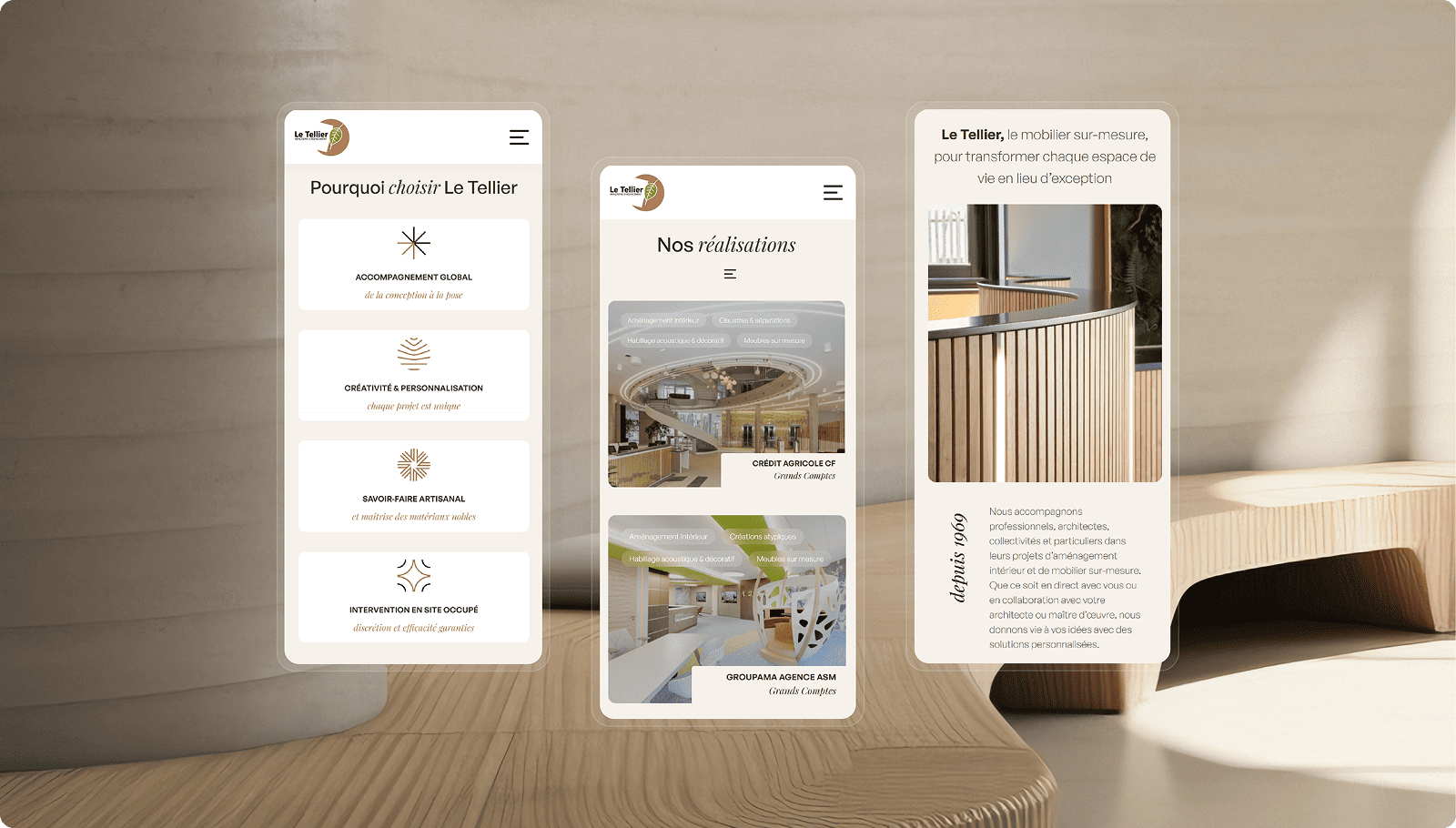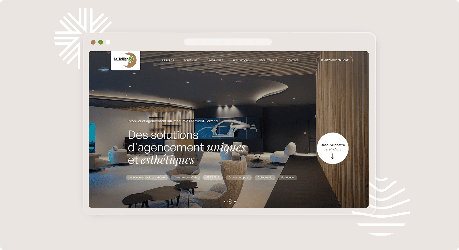 L’objectif était d’actualiser l’image de marque en proposant une identité visuelle à la hauteur du niveau de qualité offert par Le Tellier. Le nouveau site devait également permettre de valoriser les expertises de l’entreprise auprès de ses différentes cibles (particuliers, prescripteurs, collectivités), tout en rendant la prise de rendez-vous simple et rapide grâce à une solution en ligne intégrée.